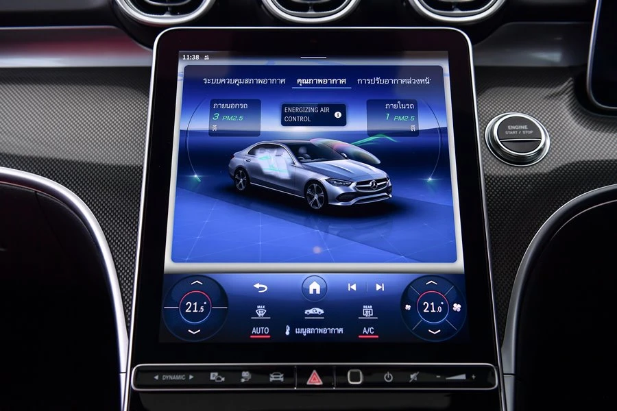 C 350 e AMG Dynamic (Night Edition) มาพร้อมการตกแต่งห้องโดยสารภายในแบบ AMG interior package โดดเด่นด้วยหน้าจอขนาด 12.3 นิ้ว บริเวณด้านหน้าของผู้ขับขี่ และหน้าจอเครื่องเล่นขนาด 11.9 นิ้ว ที่รองรับ Apple CarPlay® และ Android Auto ช่วยให้ผู้ขับขี่และผู้โดยสารสามารถเชื่อมต่อโลกดิจิทัลได้ทุกช่วงเวลา