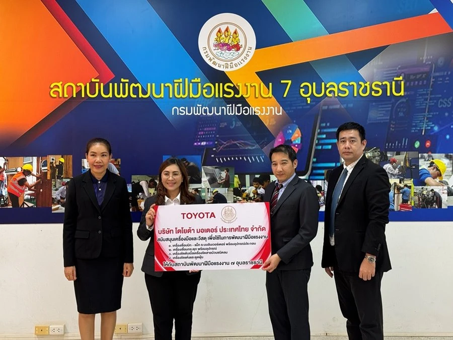 บริษัท โตโยต้า มอเตอร์ ประเทศไทย จำกัด โดย ศูนย์การศึกษาและฝึกอบรมโตโยต้า ร่วมพิธีเปิดการฝึกอบรมเตรียมเข้าทำงาน รุ่นที่ 2/2567 พร้อมทั้งบริจาควัสดุฝึก ณ สถาบันพัฒนาฝีมือแรงงาน 7 อุบลราชธานี โดยมี นางสาวบุปผา เรืองสุด อธิบดีกรมพัฒนาฝีมือแรงงาน ภายใต้โครงการเพิ่มทักษะด้านอาชีพแก่นักเรียนที่ไม่ได้เรียนต่อหลังจบการศึกษาภาคบังคับ และตรวจเยี่ยมการฝึกอบรมยกระดับฝีมือ หลักสูตรช่างซ่อมตัวถังและสีรถยนต์