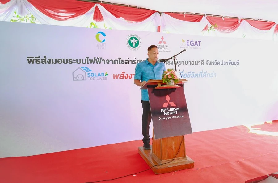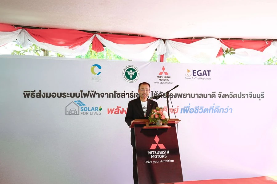 มร. เออิจิ โอกาวะ กรรมการรองผู้จัดการใหญ่ สายงานผลิต มิตซูบิชิ มอเตอร์ส ประเทศไทย เปิดเผยว่า “โครงการ ‘Solar For Lives : พลังงานแสงอาทิตย์ เพื่อชีวิตที่ดีกว่า’ เป็นหนึ่งในความมุ่งมั่นของแผนการดำเนินงานเพื่อสังคม ภายใต้วิสัยทัศน์ ‘สรรค์สร้าง เคียงข้าง สังคมไทย’ ใน 3 ด้านหลัก คือ การศึกษา สิ่งแวดล้อม และสุขภาพ ของ มิตซูบิชิ มอเตอร์ส ประเทศไทย โดยเราได้วางแผนใช้เงินลงทุนกว่า 60 ล้านบาท เพื่อติดตั้งและบำรุงรักษาระบบไฟฟ้าจากโซล่าร์เซลล์ขนาด 50 กิโลวัตต์ ให้แก่แต่ละโรงพยาบาลชุมชนทั่วประเทศ 40 แห่ง ภายในช่วงระยะเวลา 10 ปี เพื่อสร้างแหล่งพลังงานที่ยั่งยืนให้กับโรงพยาบาล และยกระดับการให้บริการด้านสุขภาพที่ดีให้กับคนไทย พร้อมส่งเสริมเป้าหมายเชิงยุทธศาสตร์ของรัฐบาลไทยที่มุ่งขับเคลื่อนประเทศไทยสู่การเป็นสังคมคาร์บอนเป็นกลาง โดยคาดว่าโครงการนี้จะสามารถช่วยลดการปล่อยก๊าซคาร์บอนไดออกไซด์ ของโรงพยาบาลนาดีได้กว่า 30 ตันคาร์บอนต่อปี”