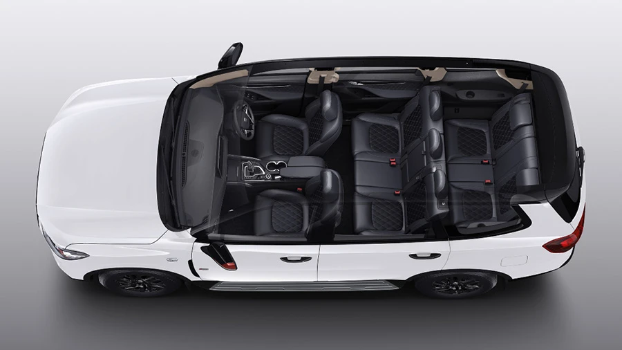 ภายในจะมาพร้อมการตกแต่งทูโทนเช่นกัน MG Gloster Storm edition มาพร้อมเบาะหนังและวัสดุบุนุ่มทั้งบนแดชบอร์ดและแผงประตู ห้องโดยสารยังมีไฟ ambient light, ไฟส่องที่ธรณีประตู รวมถึงมีการตกแต่งหลังคาด้วยลายรังผึ้งและผ้าถัก ให้ความรู้สึกเป็นรถที่ขับในเมืองมากขึ้น