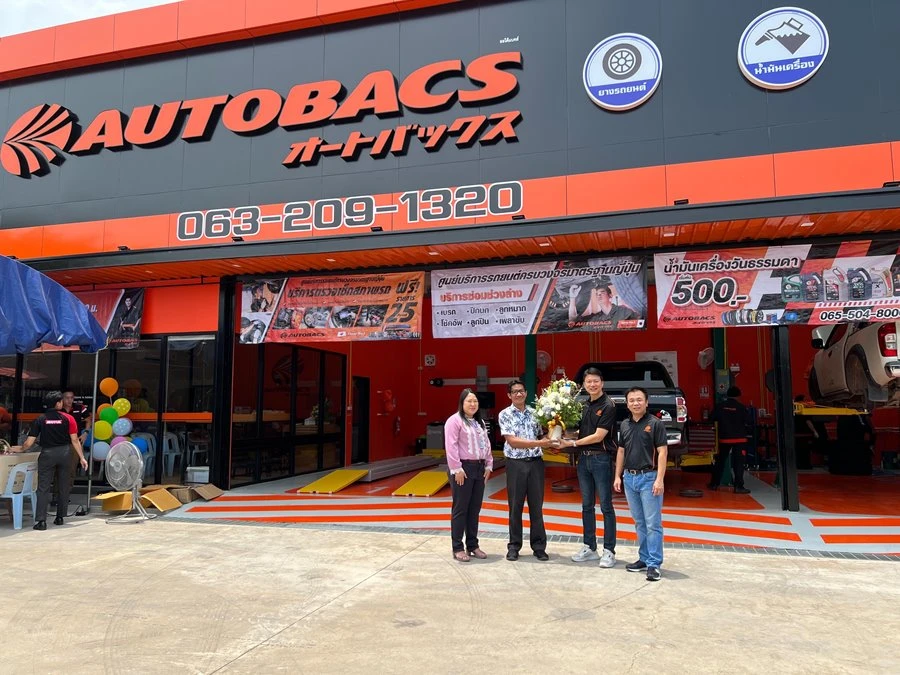 คุณวิศรุต โลจนานนท์ กรรมการผู้จัดการ บริษัท สยามออโต้แบคส์ จำกัด (คนที่ 2 จากขวา) พร้อมด้วย คุณฉัตรชัย จันทร์สองศรี (คนที่1จากขวา) ผู้ช่วยกรรมการผู้จัดการ บริษัท สยามออโต้แบคส์ จำกัด บริษัทในกลุ่ม บริษัท พีทีจี เอ็นเนอยี จำกัด (มหาชน) หรือ PTG ให้เกียรติเป็นประธานเปิดศูนย์ ออโต้แบคส์