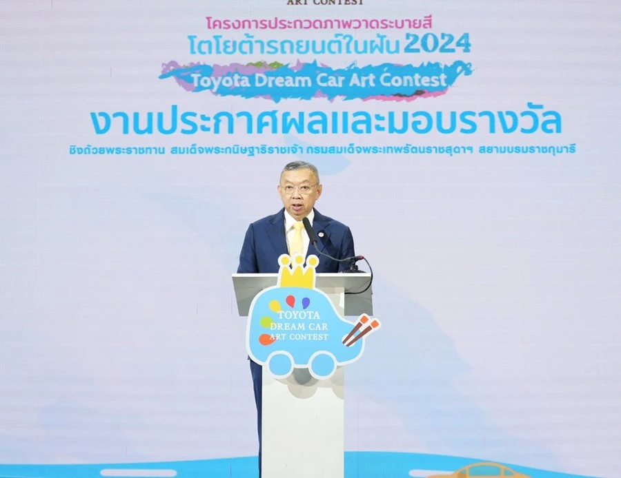 นายศุภกร รัตนวราหะ รองกรรมการผู้จัดการใหญ่ บริษัท โตโยต้า มอเตอร์ ประเทศไทย จำกัด และพลตำรวจเอก เพิ่มพูน ชิดชอบ รัฐมนตรีว่าการกระทรวงศึกษาธิการ ร่วมมอบรางวัลผู้ชนะการประกวดภาพวาดระบายสีในโครงการ โตโยต้า รถยนต์ในฝัน TOYOTA Dream Car Art Contest 2024 เมื่อวันที่ 6 มิถุนายน ศกนี้ ณ TOYOTA ALIVE ถ.บางนา-ตราด กม. 3
