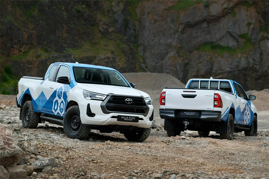 Toyota เปิดตัว Hilux FCEV ต้นแบบทั้งหมด 10 คันในอังกฤษ โดยโครงการอยู่ในขั้นตอนการทดสอบเพื่อประเมินการใช้ไฮโดรเจนฟิวเซลในรถกระบะ ซึ่งระบบส่งกำลังนี้นำมาจาก Mirai ทำให้ Hilux คันนี้สามารถวิ่งไกลถึง 600 กม.ต่อการเติมเชื้อเพลิงหนึ่งครั้ง โดยไม่ปล่อยไอเสียและไม่ต้องรอชาร์จ