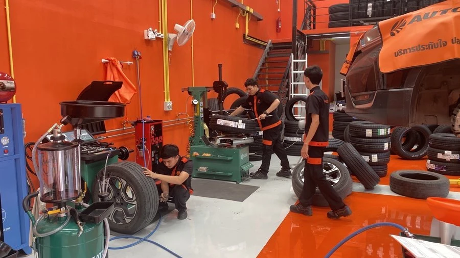 AUTOBACS บริการหลังการขาย เมื่อเปลี่ยนยางครบ 4 เส้น รับประกันนาน 1 ปี หรือ 25,000 กม. และกรณี บาด บวม แตก ฟรี! ค่าแรง ฟรี! ปะยางแบบใยไหม ฟรี! สลับยางถ่วงล้อทุก 10,000 กม. ฟรี! เติมลมไนโตรเจน ฟรี! ตรวจเช็กสภาพยาง