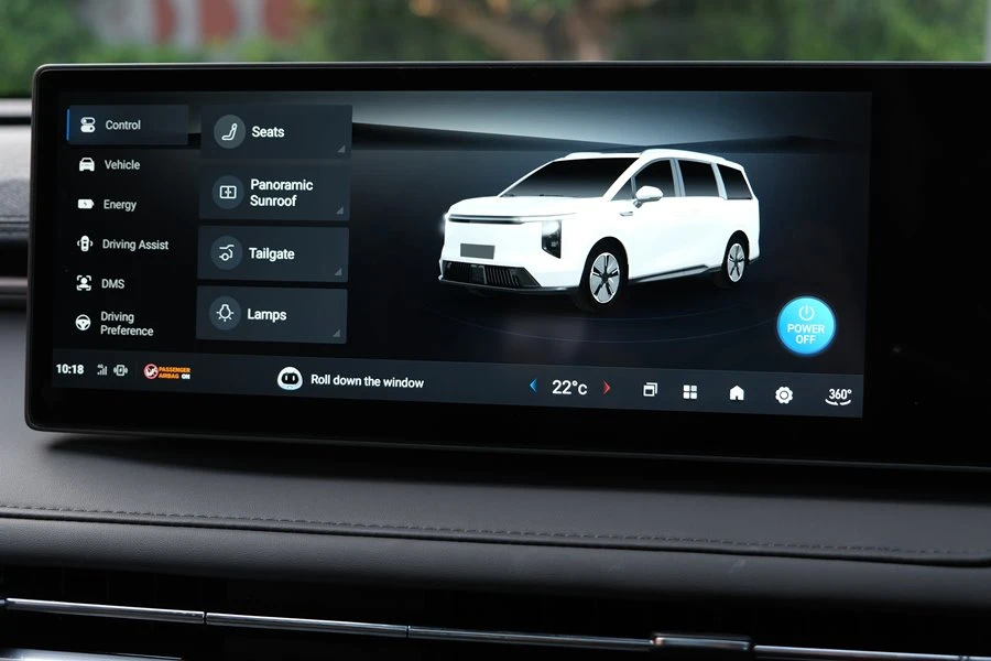 ดีไซน์คอนโซลหน้าแบบ Double Layer พร้อมที่วางแก้ว และรองรับการชาร์จแบบไร้สาย (Wireless Charger) นั่งสบายทั้งผู้ขับขี่และผู้โดยสาร ด้วยเบาะนั่งคนขับปรับไฟฟ้า 6 ทิศทาง พร้อมระบบดันหลังไฟฟ้า เบาะนั่งผู้โดยสารด้านหน้าปรับไฟฟ้า 4 ทิศทาง สามารถปรับระดับอุณหภูมิได้ตามความต้องการ สำหรับเบาะนั่งแถวที่สองเป็นแบบ Captain Seat ปรับแบบแมนนวล ที่ถูกออกแบบให้โอบรับกระชับทุกสรีระ มาพร้อมฟังก์ชันที่มอบความสะดวกสบายอย่างครบครัน