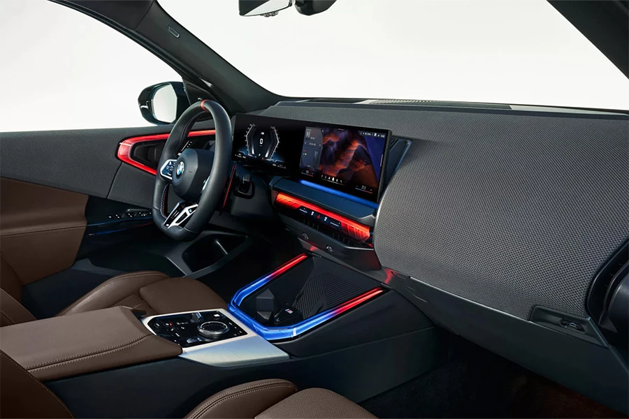 สำหรับภายในของ X3 ใหม่มีดีไซน์แบบ BMW ยุคใหม่ คล้ายกับรุ่นพี่อย่าง iX อยู่ไม่น้อย ไฟ Ambient Light ในห้องโดยสารดูล้ำสมัย โดยเฉพาะรุ่น M50 เส้นสายต่าง ๆ มีความตัดกันออกมาเป็นรูปร่างที่ดูแปลกตา แต่ด้วยเส้นแนวนอนที่ยาวของแดชบอร์ดและการลดทอนปุ่มกดต่าง ๆ ทำให้ดูมินิมอล ให้ความสะอาดตา