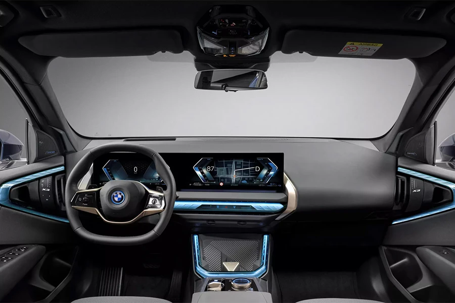 เช่นเดียวกับ BMW ยุคใหม่คันอื่น ๆ X3 ใหม่ก็มีจอโค้ง BMW Curved Display ด้วยเช่นกัน มาพร้อมระบบปฏิบัติการล่าสุด BMW Operating System 9 พร้อมระบบ QuickSelect ยังควบคุมด้วยปุ่ม iDrive กลางคอนโซล รวมถึงพวงมาลัยท้ายตัดแบบ 5 และ 7 Series นอกจากนี้ยังมีวัสดุใหม่เป็นโพลีเอสเตอร์รีไซเคิลที่ถักทอกันบนแผงหน้าปัดซึ่งเป็นครั้งแรกของวัสดุนี้ใน BMW
