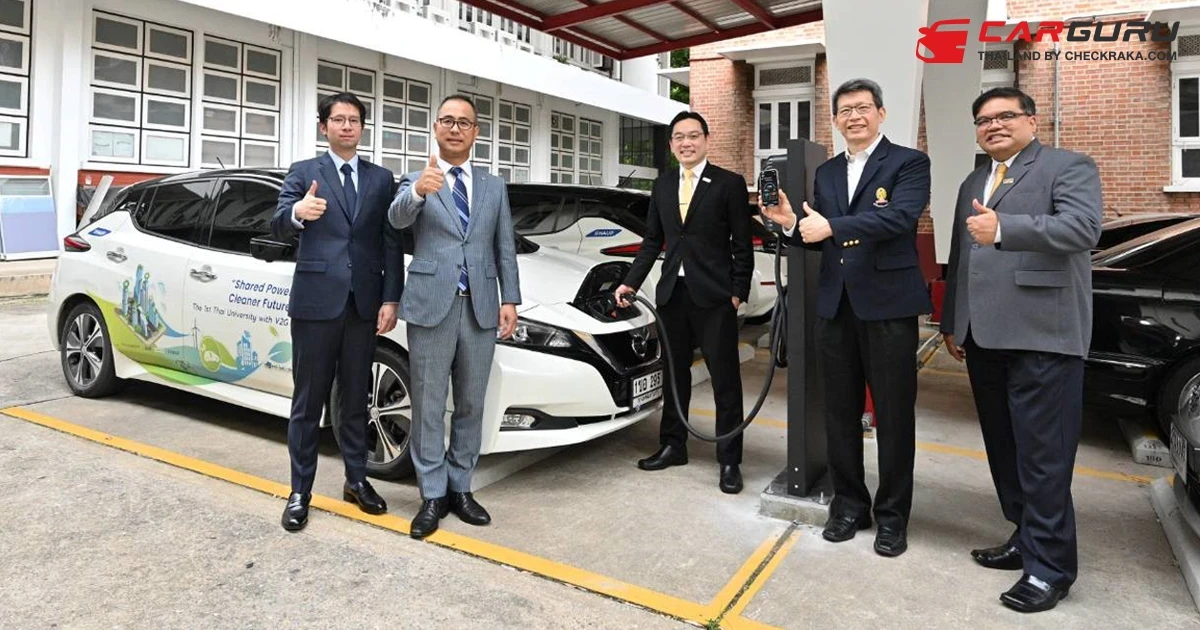 (จากซ้ายไปขวา) นายกฤษฏิ์ วิชัยวัฒนาพาณิชย์ กรรมการผู้จัดการ บริษัท ฮ้อปคาร์ จำกัด, นาย มาซาโอะ สึสึมิ รองประธานอาวุโส บริษัท นิสสัน มอเตอร์ (ประเทศไทย), รศ.ดร.กุลยศ อุดมวงศ์เสรี ประธานกรรมการเทคโนโลยีดิจิทัล การจัดการความรู้และนวัตกรรม การไฟฟ้าฝ่ายผลิตแห่งประเทศไทย, ศ. ดร. สุพจน์ เตชวรสินสกุล คณบดีคณะวิศวกรรมศาสตร์ จุฬาลงกรณ์มหาวิทยาลัย, นายวฤต รัตนชื่น ผู้ช่วยผู้ว่าการวิจัย นวัตกรรม และพัฒนาธุรกิจ การไฟฟ้าฝ่ายผลิตแห่งประเทศไทย เปิดโครงการทดสอบการใช้พลังงานไฟฟ้าจากรถยนต์กลับเข้าสู่ระบบจ่ายไฟฟ้า (Vehicle to Grid) เพื่อศึกษาการจัดการพลังงานอย่างยั่งยืนในอนาคต