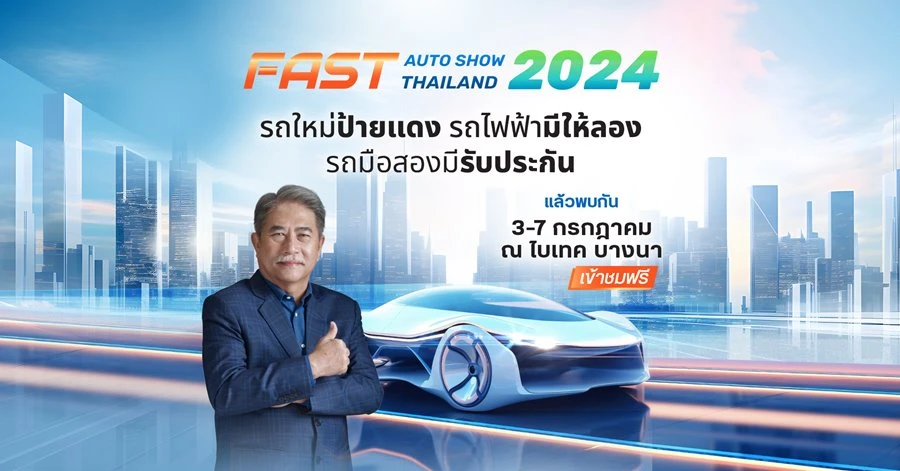 เริ่มแล้ว ฟาสต์ ออโต โชว์ ไทยแลนด์ 2024 (FAST Auto Show Thailand 2024) งานแสดงและซื้อ-ขายรถยนต์ครบวงจร มั่นใจนำกองทัพรถจาก 15 แบรนด์รถใหม่ป้ายแดง และ 8 ผู้ประกอบการรถยนต์ใช้แล้ว ร่วมสตาร์ทเครื่องกระตุ้นยอดขายช่วงกลางปี แนะผู้ที่ต้องการใช้รถพลิกวิกฤตให้เป็นโอกาส เลือกคันที่ชอบ ถอยคันที่ใช่ ได้รถคุณภาพเยี่ยมในราคาโปรจุใจ ครบจบในงานเดียว ทั้ง รถใหม่ป้ายแดง รถไฟฟ้ามีให้ลอง รถมือสองมีรับประกัน เข้าชมฟรี ไม่มีค่าใช้จ่าย 10 โมงเช้า - 3 ทุ่ม วันที่ 3-7 กรกฎาคม 2567 นี้ ณ ศูนย์นิทรรศการและการประชุมไบเทค บางนา จองรถใหม่หรือรถใช้แล้วในงานลุ้นรับรถมอเตอร์ไซค์ไฟฟ้า AJ EV และลุ้นรับโชคตลอด 5 วันเต็ม มูลค่ารวมกว่า 400,000 บาท โดยมี นายชาดา ไทยเศรษฐ์ รัฐมนตรีช่วยว่าการกระทรวงมหาดไทย ให้เกียรติเป็นประธานในพิธีเปิดงาน