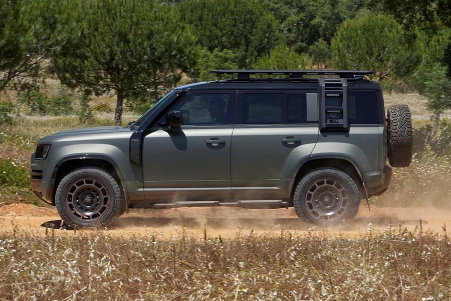 Defender Octa ยังมาพร้อมยาง Goodyear Wrangler แบบ All-Terrain ขนาด 33 นิ้ว ที่พัฒนาขึ้นสำหรับรถคันนี้โดยเฉพาะ ตัวรถยังถูกดีไซน์ส่วนล่างใหม่ทั้งหมด ตั้งแต่ซุ้มล้อ กันชนใหม่ที่ปรับปรุงเพื่อเพิ่มมุมออฟโรด กระจังหน้าใหม่ที่ดักลมได้มากขึ้น ท่อไอเสีย 4 ท่อพร้อมระบบ active exhaust system รวมถึงจุดยึดฉุกเฉินทั้งหน้า-หลังและแผ่นกันกระแทกใต้ท้องรถ