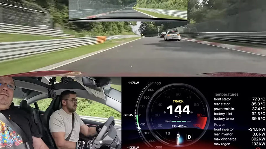ขณะเดียวกัน Charoudin นักขับคนเดิม สามารถขับ Hyundai Ioniq 5 N คู่แข่งเซกเมนท์ใกล้เคียงกันวิ่งในสนาม Nurburgring Nordschleife ได้สองรอบโดยไม่พบปัญหาเรื่องความร้อนแบตเตอรี่หรือเบรคเลย