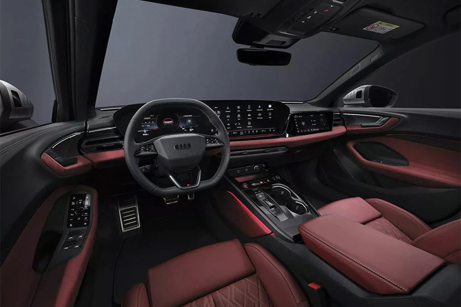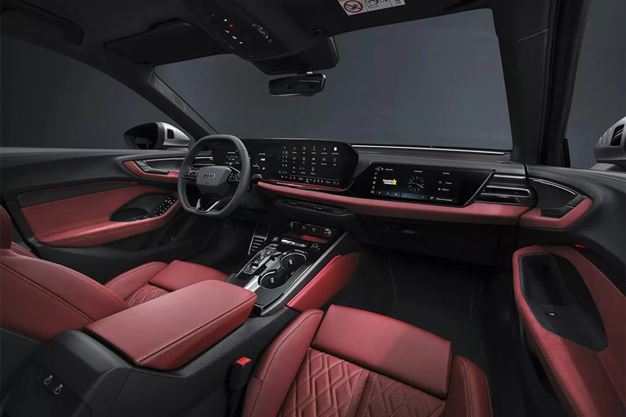 เมื่อเข้ามาภายในเราจะเห็นว่าห้องโดยสารถูกดีไซน์ใหม่ทั้งหมด การออกแบบในภาพรวมดูสะอาดตา ให้ความหรูหราพรีเมียมมากขึ้น หน้าจอโค้งตรงกลางประกอบด้วย มาตรวัดดิจิทัลขนาด 11.9 นิ้ว และหน้าจอขนาด 14.5 นิ้วสำหรับระบบ MMI infotainment ของ Audi มาพร้อมระบบ HUD ไม่ต้องละสายตาจากถนน