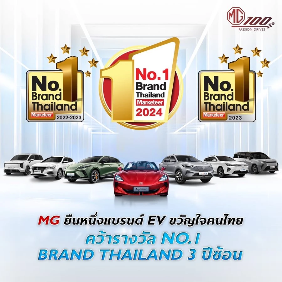 บริษัท เอสเอไอซี มอเตอร์ – ซีพี จำกัด และ บริษัท เอ็มจี เซลส์ (ประเทศไทย) จำกัด ผู้ผลิตและผู้จำหน่ายรถยนต์ เอ็มจี ในประเทศไทย คว้ารางวัล No.1 Brand Thailand 2024 ในหมวด รถยนต์ไฟฟ้า (EV Car) ติดต่อกันเป็นปีที่ 3 สะท้อนถึงการเป็นแบรนด์ที่ผู้บริโภคคนไทยไว้วางใจ และความสำเร็จในการยกระดับตลาดอีวีให้เติบโตอย่างยั่งยืน ด้วยความมุ่งมั่นในการนำเสนอยานยนต์ไฟฟ้า ควบคู่ไปกับการสร้างความแข็งแกร่งให้กับระบบนิเวศยานยนต์ไฟฟ้าอย่างต่อเนื่อง อีกทั้งยังเป็นแบรนด์ที่มีนโยบายการดูแลที่ชัดเจน และเป็นรูปธรรม