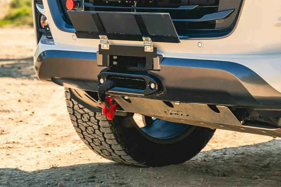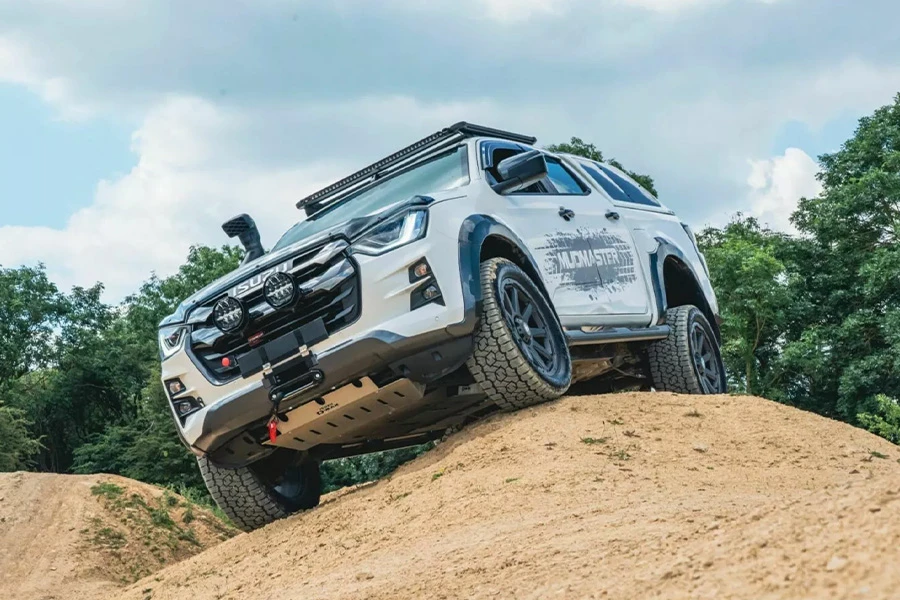 กระบะคันนี้ยังติดตั้งแผ่นกันกระแทกเพิ่มเติม โดยเสริมวัสดุให้เป็นเหล็กบริเวณใต้ท้องรถ, ซุ้มล้อที่ใหญ่ขึ้น, บันไดข้างใหม่, ตรา Isuzu สีขาว และตรา Mudmaster ข้างรถ ด้านข้างเราจะเห็นล้ออัลลอยขนาด 20 นิ้วลาย Hurricane รัดด้วยยางออลเทอเรน Toyo Open Country A/T III ชุดล้อมาพร้อมช่วงล่างออฟโรดจาก Pedders ทำให้ความสูงของรถเพิ่มขึ้นจากเดิม 45 มม.
