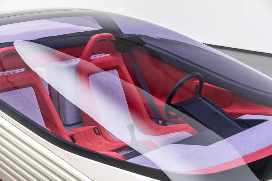 ส่วนของสปอยเลอร์ใสด้านหลังนอกจากจะดูน่าสนใจแล้ว ยังทำหน้าที่เป็น “เบรคลมที่ควบคุมโดยผู้ขับขี่” นอกจากนี้ รถต้นแบบยังมีแอโรไดนามิกส์แบบ “ground-effect” และวัสดุน้ำหนักเบา เช่น แผงรังผึ้ง, คาร์บอนไฟเบอร์ และเคฟลาร์