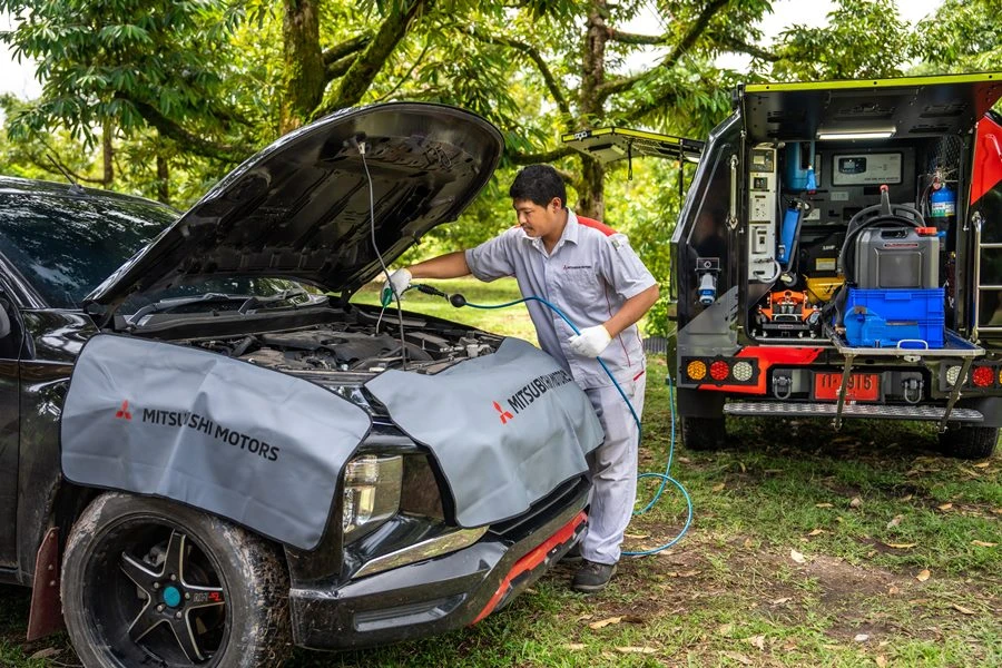 รถบริการนอกสถานที่ มิตซูบิชิ โมบายเซอร์วิส จะให้บริการโดยเครือข่ายผู้จำหน่ายของ มิตซูบิชิ มอเตอร์ส ประเทศไทย เพื่อมอบความสะดวกสบาย ส่งตรงบริการถึงที่ ให้ความช่วยเหลือฉุกเฉินได้อย่างรวดเร็ว โดยนายโฆษิต รินทรานุรักษ์ กรรมการผู้จัดการ บริษัท มิตซูจันทบุรี จำกัด กล่าวว่า “รถมิตซูบิชิ โมบายเซอร์วิส รุ่นใหม่ ช่วยเพิ่มศักยภาพในการให้บริการของผู้จำหน่ายได้อย่างดี ขยายพื้นที่ให้บริการได้ครอบคลุมกว้างไกล โดยการให้บริการงานนอกสถานที่จะช่วยเสริมสร้างความพึงพอใจของลูกค้า ซึ่งเราสามารถส่งรถออกไปให้บริการลูกค้าได้ทุกที่อย่างทันท่วงที มอบความสะดวกสบาย ประหยัดเวลา และเพิ่มความอุ่นใจให้กับลูกค้าไม่ว่าจะอยู่ที่ไหน”