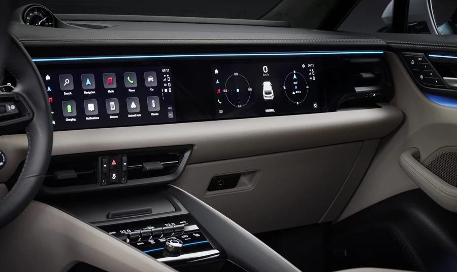 มาคันน์ (Macan) มาพร้อมกับหน้าจอแสดงผลและระบบปฏิบัติการรุ่นใหม่ล่าสุด โดยมีหน้าจอถึง 3 หน้าจอ ประกอบด้วยหน้าปัดแบบโค้งขนาด 12.6 นิ้ว และหน้าจอกลางขนาด 10.9 นิ้ว