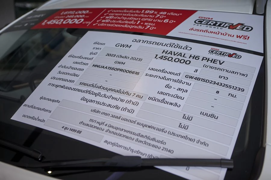 GWM Certified Day ที่จะจัดขึ้นในระหว่างวันที่ 13 – 19 สิงหาคม 2567 นี้ ทาง เกรท วอลล์ มอเตอร์ ขนทัพรถยนต์พลังงานใหม่ใช้แล้วกว่า 120 คัน ได้แก่ GWM HAVAL H6 PHEV จำนวน 30 คัน GWM HAVAL H6 HEV จำนวน 57 คัน และ GWM HAVAL JOLION HEV รุ่น ULTRA จำนวน 33 คัน อวดโฉมให้ผู้ที่สนใจได้สัมผัสกันทั่วทั้ง 4 จุดสำคัญกระจายทั่วกรุงเทพฯ