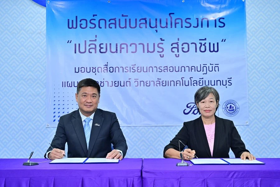 ฟอร์ด ประเทศไทย ร่วมกับ มูลนิธิยุวพัฒน์ และทีช ฟอร์ ไทยแลนด์ (Teach for Thailand) เดินหน้าขยายศักยภาพโครงการ เปลี่ยนความรู้ สู่อาชีพ มอบทุนการศึกษาพร้อมชุดสื่อการเรียนการสอนแก่วิทยาลัยเทคโนโลยีนนทบุรี เพื่อส่งเสริมความต่อเนื่องทางการเรียนรู้และการพัฒนาทักษะที่จำเป็นแก่นักศึกษาจำนวน 10 คน รวมมูลค่าทุนการศึกษากว่า 773,000 บาท