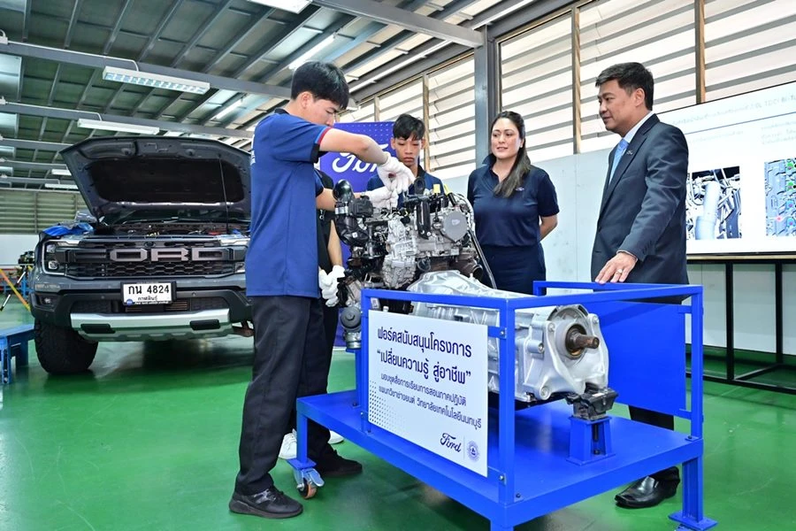 ตลอดระยะเวลา 2 ปีที่เข้าร่วมโครงการ นักศึกษาสาขาเทคนิคยานยนต์ จะมีโอกาสฝึกฝนทักษะการทำงานจริง ที่ศูนย์บริการฟอร์ดในพื้นที่ใกล้เคียง เพื่อพัฒนาทักษะได้อย่างเต็มศักยภาพ ทั้งนี้ ฟอร์ด ประเทศไทย ได้ให้การสนับสนุนโครงการ เปลี่ยนความรู้ สู่อาชีพ ต่อเนื่องเป็นปีที่ 7 แล้ว โดยนับตั้งแต่เริ่มโครงการในปี 2560 ฟอร์ด ประเทศไทย และฟอร์ด ฟิแลนโธรพี (Ford Philanthropy) หน่วยงานเพื่อสังคมของฟอร์ด มอเตอร์ คัมปะนี ที่เปลี่ยนชื่อจากกองทุนฟอร์ด ฟันด์ เมื่อต้นปี 2567 ได้มอบทุนการศึกษารวมแล้วกว่า 9,257,000 บาท แก่นักศึกษาจำนวน 64 คน โดยมีผู้รับทุนที่จบการศึกษาและเข้าสู่อุตสาหกรรมยานยนต์แล้ว 32 คน