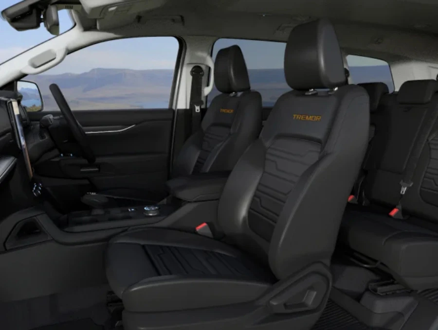 สำหรับภายในก็จะคล้ายกับ Everest ทั่วไป มาพร้อมโทนสีดำและมาพร้อมการปัก Tremor ไว้บริเวณเบาะนั่งคู่หน้าเช่นเดียวกับรุ่นอื่น ๆ (เช่น Wildtrak, Raptor) รวมถึงมีพรมแบบ all-weather มาให้ด้วย