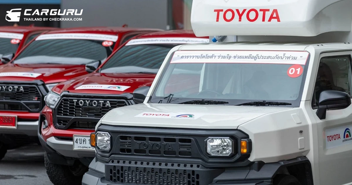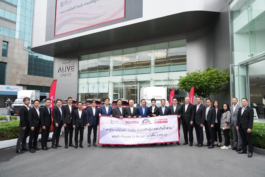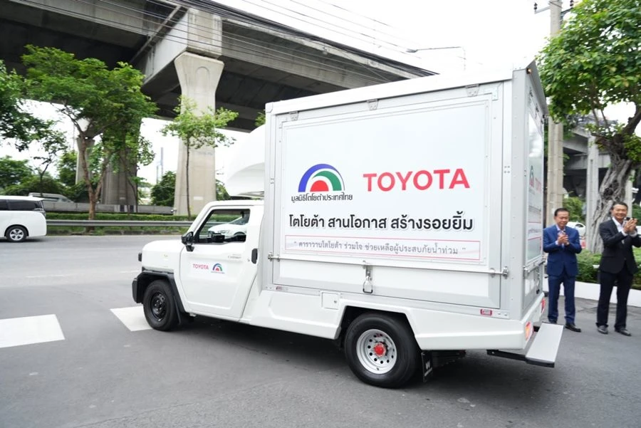 มูลนิธิโตโยต้าประเทศไทย, บริษัท โตโยต้า มอเตอร์ ประเทศไทย จำกัด, ชมรมผู้แทนจำหน่ายโตโยต้า ทั่วประเทศ และบริษัท โตโยต้า ลีสซิ่ง (ประเทศไทย) จำกัด มีความห่วงใยและตั้งใจในการร่วมช่วยเหลือคนไทย ให้ก้าวผ่านวิกฤติครั้งนี้ไปด้วยกันโดยเร็วที่สุด จึงได้ร่วมมือกันสนับสนุนถุงยังชีพ จำนวน 2,000 ชุด ข้าวรัชมงคล 11 ตัน และสุขากระดาษจากมูลนิธิเอสซีจี (SCG Foundation) จำนวน 300 ชุด เพื่อนำไปแจกจ่ายให้กับประชาชนที่เดือดร้อนในแต่ละพื้นที่ และชุมชนที่อยู่บริเวณใกล้เคียงกับผู้แทนจำหน่ายฯ ตลอดจนส่งรถกระบะโตโยต้า ไฮลักซ์ รีโว่ และไฮลักซ์ แชมป์ จำนวนรวม 7 คัน เพื่อสนับสนุนการปฏิบัติภารกิจของเจ้าหน้าที่ในพื้นที่