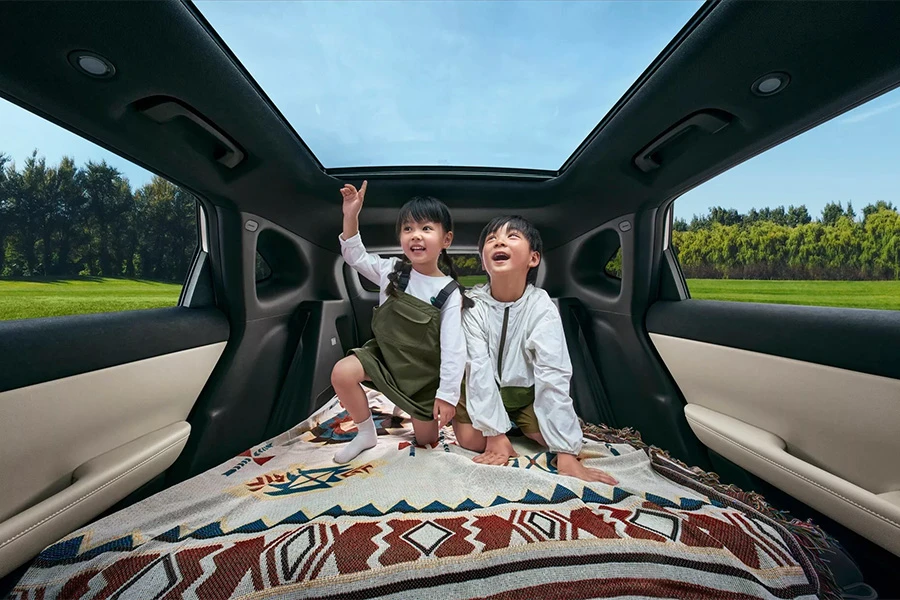 ภายในมีดีไซน์ที่ดูมินิมอลและทันสมัย เริ่มด้วยมาตรวัดดิจิทัลขนาด 8.8 นิ้ว และหน้าจออินโฟเทนเมนต์ตรงกลางขนาด 15.6 นิ้ว มีพวงมาลัยหุ้มหนังมัลติฟังก์ชัน เบาะนั่งหุ้มหนัง เบาะนั่งด้านหน้าสามารถปรับนอนเพื่อ “การงีบหลับ” ได้