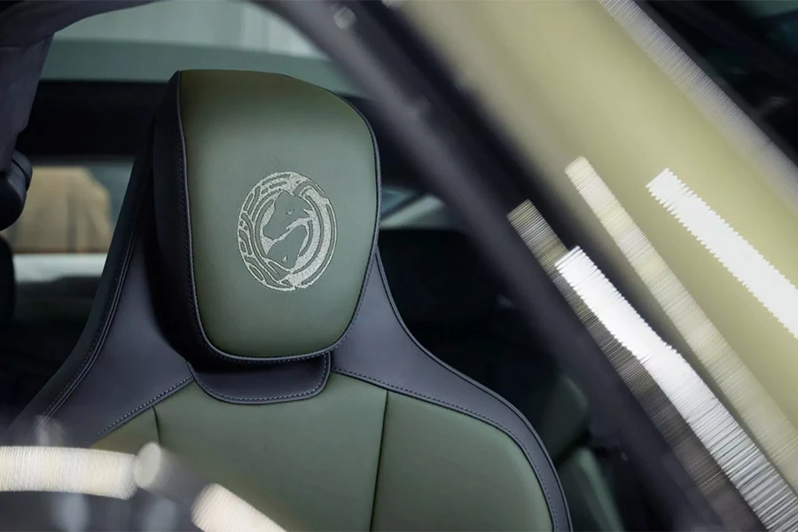 ส่วนสีห้องโดยสารภายในมาพร้อมออพชั่นสีพิเศษ Leather to Sample ในสีเขียว Englishgreen หนึ่งในสีพิเศษทั้ง 150 เฉดที่มี โดยตัดกับสีเทา Slate Grey