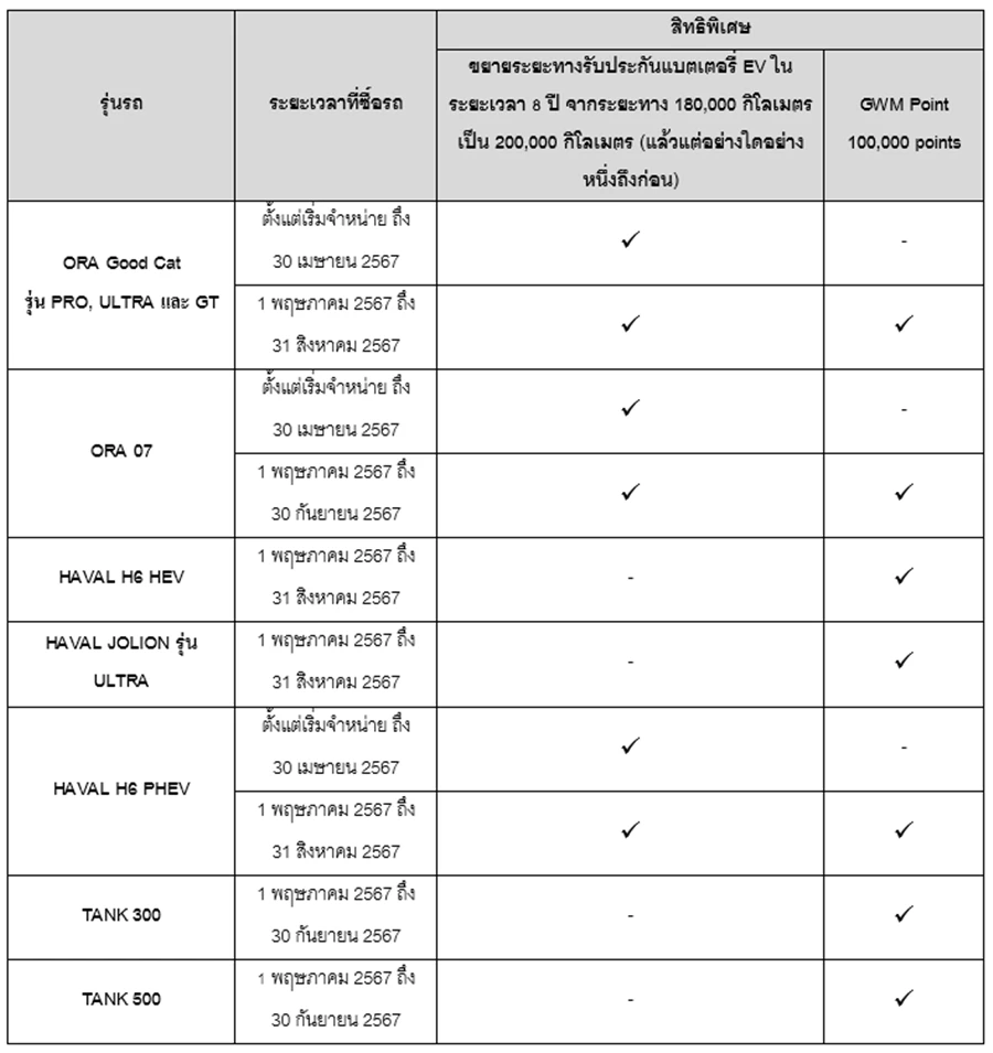 ทั้งนี้ เพื่อเป็นการขอบคุณลูกค้าที่ได้ให้การสนับสนุนและความไว้วางใจแก่ผลิตภัณฑ์ทุกรุ่น เกรท วอลล์ มอเตอร์ ขอมอบสิทธิประโยชน์เพิ่มเติมให้กับลูกค้าดังกล่าว ตามรายละเอียดต่อไปนี้