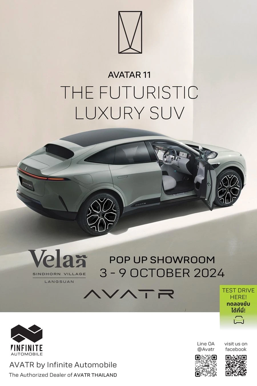 สำหรับผู้ที่สนใจสามารถติดต่อเพื่อชมความหรูหราและทดลองขับ AVATR 11 ได้แล้ววันนี้ที่บริษัท อินฟินิท ออโตโมบิล จำกัด โทร 065-839-9888 หรือติดตามข้อมูลเพิ่มเติมได้ที่ www.avatrthailand.com , Line Official: @avatr และ Facebook/Instagram/Tiktok: AVATR by Infinite Automobile