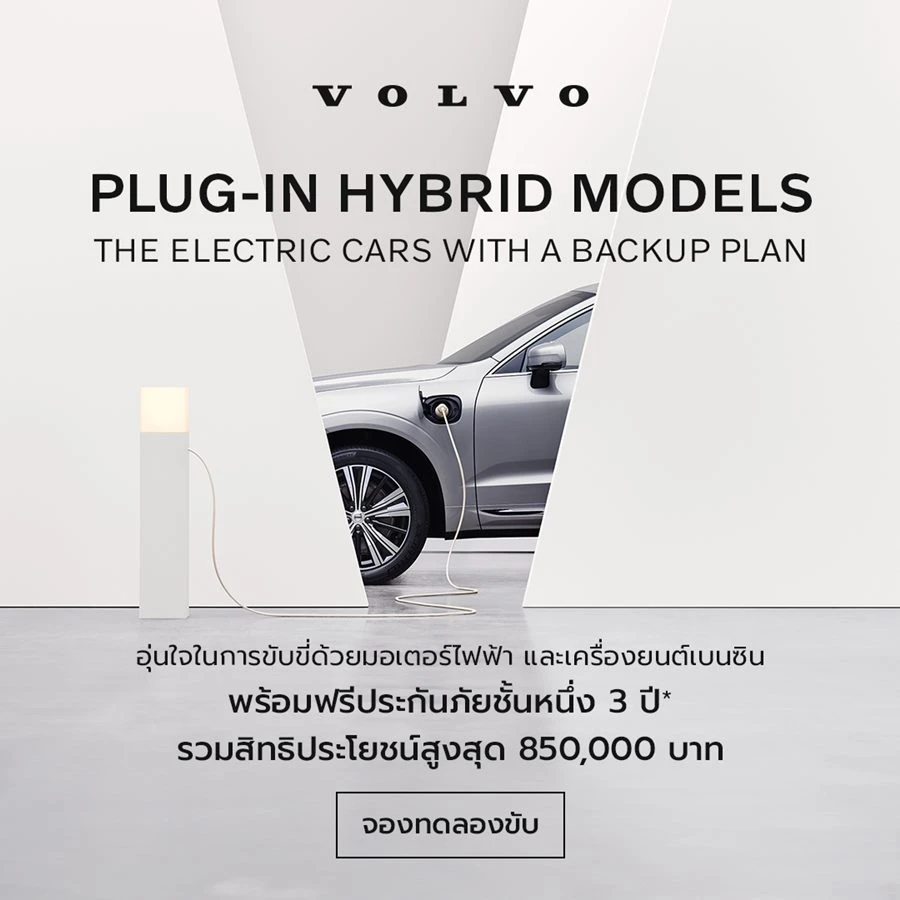 วอลโว่ คาร์ ประเทศไทย มอบแคมเปญพิเศษตลอดเดือนตุลาคม เพื่อเอาใจลูกค้าที่สนใจรถยนต์วอลโว่ในรุ่นปลั๊กอินไฮบริด หรือมองหาทางเลือกที่ตอบโจทย์การใช้งานระหว่างการเปลี่ยนผ่านไปสู่รถไฟฟ้าเต็มรูปแบบ โดยแคมเปญนี้ครอบคลุมรถปลั๊กอินไฮบริดในทุกรุ่นยอดนิยม อาทิ Volvo XC90, XC60, S90, S60 และ V60 ทั้งในรุ่นปี 2024 และ 2025 พร้อมข้อเสนอสุดพิเศษเพียงซื้อรถยนต์ปลั๊กอินไฮบริดในรุ่น และสีที่ร่วมรายการ* รับฟรีประกันภัยชั้น 1 เป็นระยะเวลา 3 ปี และยังได้รับข้อเสนอพิเศษอื่นๆ สิทธิประโยชน์รวมสูงสุด 850,000 บาท ตั้งแต่วันนี้ จนถึง 31 ตุลาคมนี้เท่านั้น