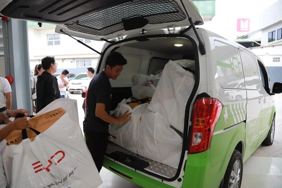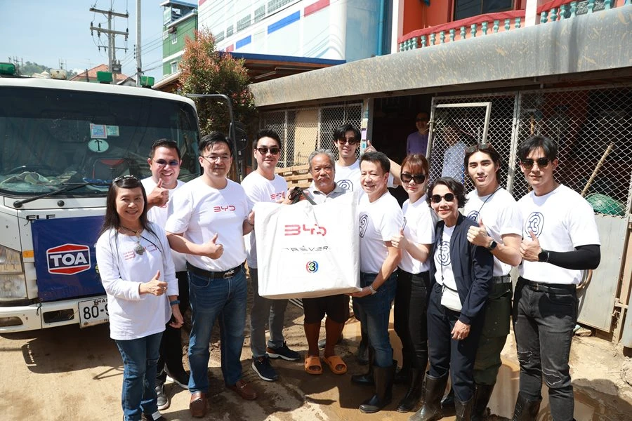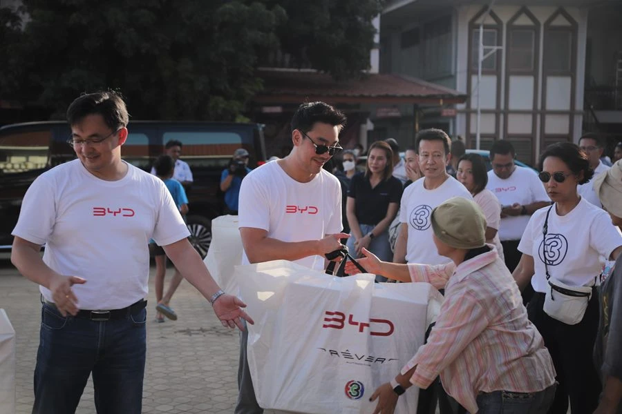 โดยลำเลียงส่งเครื่องใช้ไฟฟ้าที่จำเป็นต่อการดำรงชีพ เข้าพื้นที่ที่ต้องการความช่วยเหลือจากตัวเมืองเชียงรายไปยังพื้นที่อำเภอแม่สาย ด้วย BYD M6, BYD ATTO 3, BYD SEALION 6 และ BYD T3 พร้อมได้รับการสนับสนุนรถปฏิบัติการขนย้ายผู้ประสบภัย จากสำนักงานป้องกันและบรรเทาสาธารณภัยจังหวัดเชียงราย รวมถึงคณะรถใหญ่อีกมากมายร่วมในการขนย้ายครั้งนี้