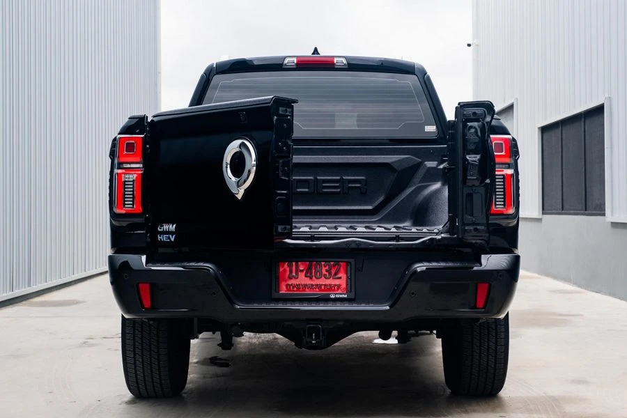 สำหรับดีไซน์ด้านหลังก็ถูกออกแบบมาให้โดดเด่นและเรียบหรูให้เข้ากับดีไซน์ด้านหน้าได้อย่างลงตัวกับฝาท้ายอัจฉริยะที่สามารถเปิด-ปิดได้ถึง 2 รูปแบบ ร่วมกับระบบผ่อนแรง (เฉพาะรุ่น 2.0T HEV ULTRA DOUBLE CAB AUTO 4WD) สามารถควบคุมได้ง่าย ๆ เพียงสัมผัสแค่ปลายนิ้ว อีกทั้งยังสามารถรองรับการใช้งานทุกรูปแบบได้อีกด้วย นอกจากรูปลักษณ์อันเรียบหรูที่ถูกออกแบบรอบตัวรถแล้ว ล้ออัลลอยขนาด 18 นิ้ว ที่มาพร้อมกับยางขนาด 265/60 ยังสะท้อนความพรีเมียมผสานกับดีไซน์ภายนอกของตัวรถได้เป็นอย่างดี