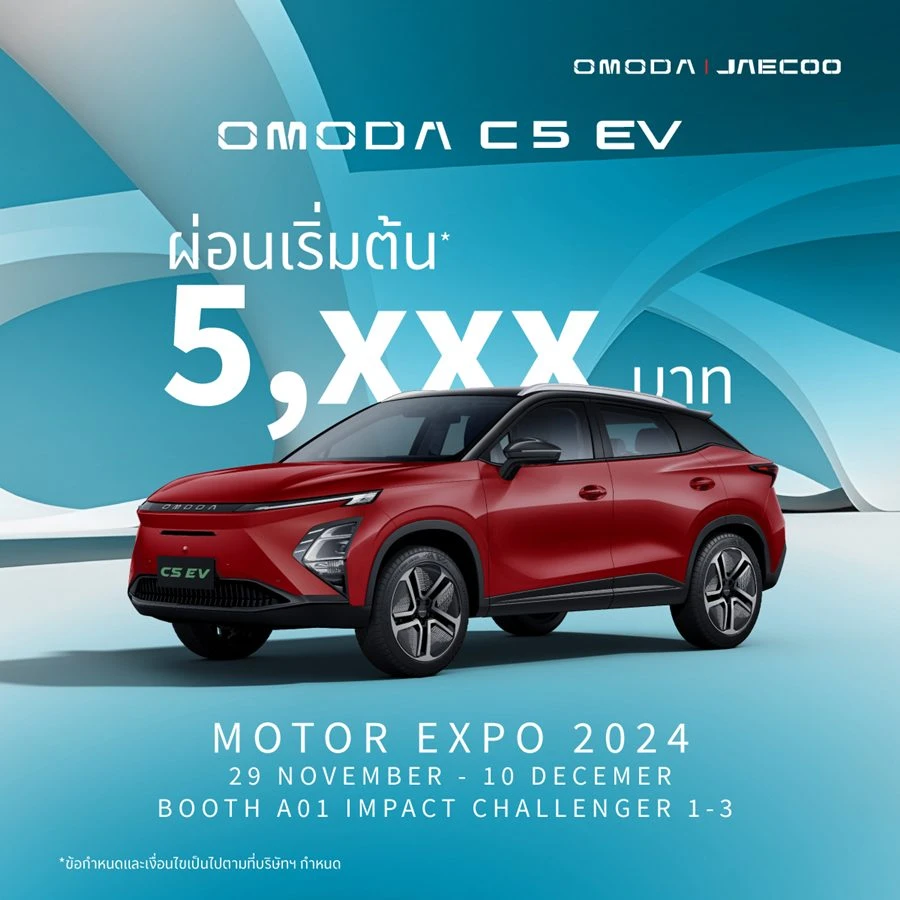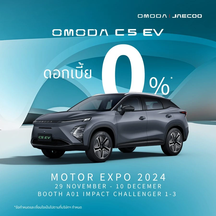 โอโมดา แอนด์ เจคู ประเทศไทย แบรนด์รถยนต์ภายใต้ Chery Automobile บริษัทเทคโนโลยียานยนต์ชั้นนำระดับโลกสัญชาติจีน ผู้ส่งออกรถยนต์นั่งส่วนบุคคลรายใหญ่ที่สุดของจีน และเป็นแบรนด์รถยนต์ที่เติบโตเร็วที่สุดในโลก ซึ่งในปีนี้ถือเป็นปีแรกที่ OMODA & JAECOO เข้าร่วมงาน มหกรรมยานยนต์ ครั้งที่ 41 หรือ Thailand International Motor Expo 2024 ที่มาพร้อมกับแนวคิดบูธจัดแสดงภายใต้แนวคิด NEW ENERGY, NEW ECO, NEW ERA สะท้อนความมุ่งมั่นของแบรนด์ในการร่วมสร้างระบบนิเวศพลังงานใหม่ที่เปลี่ยนแปลงโลกของเราอย่างยั่งยืน ด้วยโมเดลรถสุดล้ำที่ตอบโจทย์การใช้พลังงานสะอาดและเทคโนโลยีที่เป็นมิตรต่อสิ่งแวดล้อม พร้อมกับการสร้างประสบการณ์การขับขี่ที่ก้าวข้ามข้อจำกัดเดิม ๆ ภายในงานโอโมดา แอนด์ เจคู ได้ส่งมอบข้อเสนอพิเศษสุดเร้าใจต้อนรับลูกค้าเข้ามาเป็นสมาชิก OJ Club กับโปรโมชัน แคมเปญ Motor Expo Deal ร่วมเป็นเจ้าของรถ OMODA C5 EV และ JAECOO 6 EV ได้ง่าย ๆ ผ่อน OMODA C5 EV เริ่มต้นเพียง 5,000 กว่าบาทต่อเดือน(2) พร้อมรับส่วนลดสูงสุดมูลค่ากว่า 150,000 บาท** (เฉพาะรุ่น) และลุ้นรับสิทธิพิเศษอีกมากมายภายในงาน