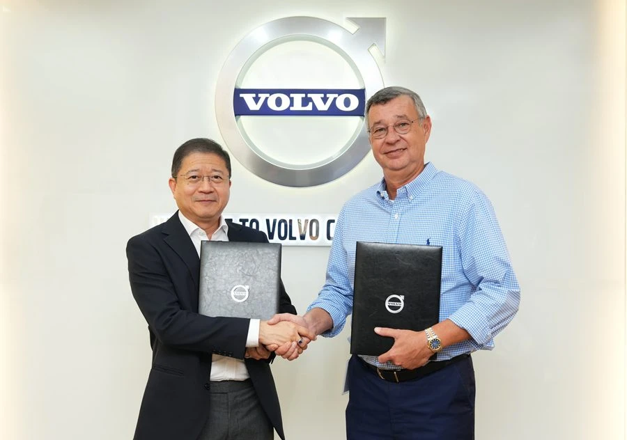 ในภาพ : (ขวา) คุณคริส เวลส์ กรรมการผู้จัดการ บริษัท วอลโว่ คาร์ ประเทศไทย จำกัด ถ่ายภาพร่วมกับ คุณวิน สันติพงศ์ไชย ประธานเจ้าหน้าที่บริหาร บริษัท จีที ออโต้ จำกัด (ซ้าย) ในพิธีลงนามความร่วมมือเปิดโชว์รูมแห่งใหม่ วอลโว่ พัฒนาการ และศูนย์บริการซ่อมตัวถังและสีมาตรฐานครบวงจร แห่งที่ 4