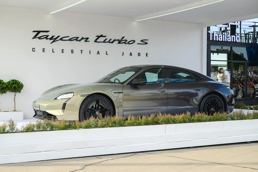 ที่ใจกลางของ Porsche Village คือ ปอร์เช่ (Porsche) ที่หายากที่สุด นั่นคือ ไทคานน์ เทอร์โบ เอส เซเลสเชี่ยล เจด (Taycan Turbo S Celestial Jade) ซึ่งเพิ่งเปิดตัวครั้งแรกในประเทศไทยที่ Porsche Centre Bangna เมื่อวันก่อน