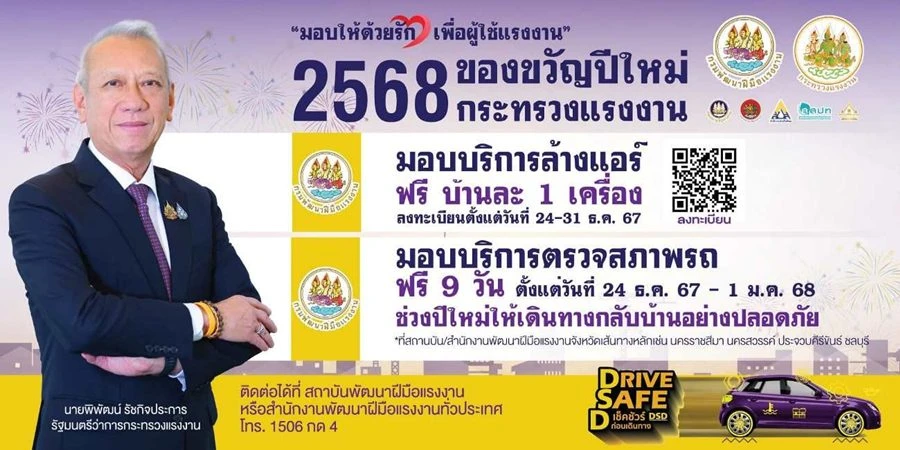 บริษัท โตโยต้า มอเตอร์ ประเทศไทย จำกัด ร่วมกับ ผู้แทนจำหน่ายโตโยต้า เข้าร่วมงาน โครงการ Drive Safe D เช็คชัวร์ ก่อนเดินทาง โดย ท่านรัฐมนตรีว่าการกระทรวงแรงงาน นายพิพัฒน์ รัชกิจประการ เป็นประธานในพิธีเปิดงาน เมื่อวันที่ 24 ธันวาคม 2567 ที่ผ่านมา ณ กระทรวงแรงงาน