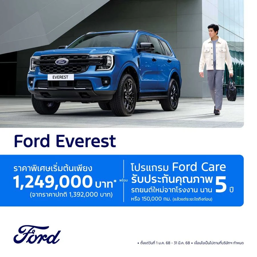 “แคมเปญนี้เป็นการต่อยอดจากงานมอเตอร์ เอ็กซ์โปที่ผ่านมา ซึ่งได้รับเสียงตอบรับอย่างดีเยี่ยม เราจึงตั้งใจมอบเป็นของขวัญปีใหม่ให้กับลูกค้าฟอร์ดทุกท่าน ที่กำลังมองหารถยนต์คู่ใจคันใหม่ เพื่อเริ่มต้นปีด้วยความมั่นใจและก้าวสู่เป้าหมายที่ตั้งใจไว้ตลอดปี 2568 ด้วยดีไซน์อันโดดเด่นของทั้งฟอร์ด เรนเจอร์ และฟอร์ด เอเวอเรสต์ ผสานสมรรถนะที่เหนือชั้น เทคโนโลยีทันสมัย อุปกรณ์ความปลอดภัยครบครัน และอุ่นใจจากบริการหลังการขายที่มุ่งยกระดับอย่างต่อเนื่อง เพื่อให้ฟอร์ดเป็นตัวเลือกอันดับแรกของลูกค้าทุกท่าน” นายเมธัส ลิขิตสัจจากุล ผู้อำนวยการฝ่ายการตลาด ฟอร์ด ประเทศไทย กล่าว