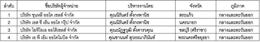 โดยผู้จำหน่ายทั้ง 3 ราย ผ่านการรับรองมาตรฐานงานบริการจาก บริษัท ซูซูกิ มอเตอร์ (ประเทศไทย) จำกัด ปัจจุบันเราจึงมีศูนย์บริการซ่อมตัวถังและสีที่ให้บริการทั่วประเทศรวมทั้งสิ้น 41 สาขา ซึ่ง 5 จุดแข็งอันสำคัญที่ทุกศูนย์บริการที่ผ่านมาตรฐานต้องมี ประกอบด้วย