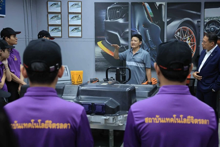 บีเอ็มดับเบิลยู กรุ๊ป ประเทศไทย เดินหน้าสานต่อกิจกรรมเพื่อสังคมอย่างต่อเนื่อง ส่งเสริมทักษะและการศึกษาของเยาวชนไทย โดยร่วมสนับสนุนการบ่มเพาะบุคลากรในตลาดแรงงานวิชาชีพบริการยานยนต์ของประเทศไทย พัฒนาทักษะช่างซ่อมระบบเครื่องยานยนต์สันดาป ในการก้าวสู่การซ่อมระบบยานยนต์ที่ขับเคลื่อนด้วยไฟฟ้าเพื่อรองรับกับเทรนด์ตลาดแรงงานในอนาคต นำบุคลากรของคณะเทคโนโลยีอุตสาหกรรม สถาบันเทคโนโลยีจิตรลดา เข้าเยี่ยมชมศูนย์บริการบีเอ็มดับเบิลยู เยอรมัน ออโต้ บางนา เพื่อเรียนรู้การปฏิบัติงานด้านการซ่อมบำรุงรถยนต์ไฟฟ้า ตามมาตรฐานความปลอดภัยของบีเอ็มดับเบิลยู พร้อมกันนี้ บีเอ็มดับเบิลยู กรุ๊ป ประเทศไทย ยังได้สานต่อโครงการ CHOICEISYOURS 2024 นำทีมนักศึกษาผู้ชนะในโครงการการประกวดแนวคิดด้านความยั่งยืน จัดแสดงผลงานที่ได้รับรางวัล ภายในงานชัยพัฒนาแฟร์ สัญจร นครนายก เมื่อเร็ว ๆ นี้