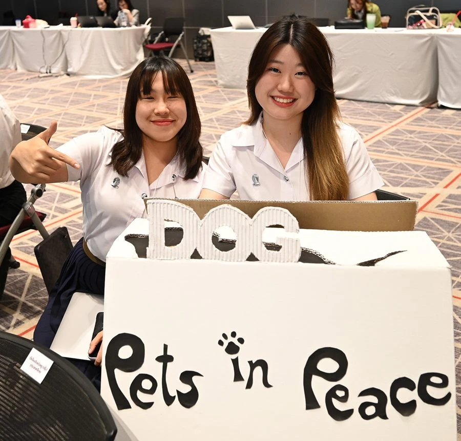 และทีม midnight muffin โดย น.ส. อรุณรัตน์ พรภคกุล คณะพาณิชยศาสตร์และการบัญชี และ น.ส. พนัชกร ติรชุลี คณะวิศวกรรมศาสตร์ ชั้นปีที่ 2 จุฬาลงกรณ์มหาวิทยาลัย ร่วมแสดงผลงานการนำกล่องกระดาษเหลือใช้จากคลังอะไหล่ของบีเอ็มดับเบิลยูมาประยุกต์ใช้เป็นกล่องใส่ร่างสัตว์เลี้ยง ในงาน “ชัยพัฒนาแฟร์ สัญจร นครนายก” ณ เขื่อนขุนด่านปราการชล จังหวัดนครนายก