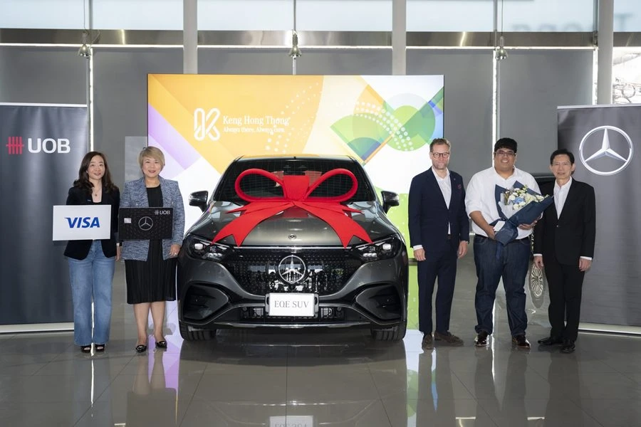 เมอร์เซเดส-เบนซ์ ประเทศไทย จัดแคมเปญพิเศษร่วมกับ ธนาคารยูโอบี ประเทศไทย ในโอกาสเฉลิมฉลองครบรอบ 5 ปี ของบัตรเครดิตยูโอบี วีซ่า เมอร์เซเดส (UOB Mercedes Credit Card) มอบรางวัลรถยนต์เมอร์เซเดส-เบนซ์ รุ่น EQE 350 4MATIC SUV AMG Dynamic มูลค่า 5,650,000 บาท
