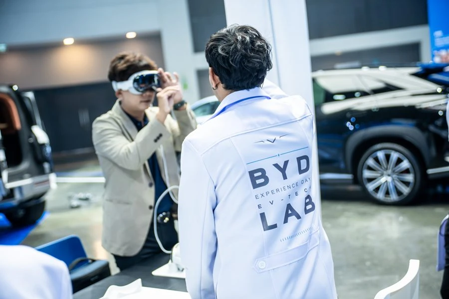 ส่วนที่สามของ BYD Lab คือ Vision-Lab ให้ผู้เข้าร่วมงานได้สัมผัสกับ Yangwang U8 คันจริงร่วมกับการใช้กล้อง interactive AR เพื่อศึกษาเทคโนโลยีในรถยนต์ผ่านภาพเสมือนจริง ในส่วนถัดไปเป็น Simulation-Lab ให้ผู้เข้าร่วมงานชมศักยภาพของ Yangwang U8 ที่สามารถขับเคลื่อนได้ในสระน้ำความลึก 1.5 เมตร ในส่วนสุดท้าย ผู้เข้าร่วมงานจะได้ทดลองขับรถยนต์ BYD รุ่นที่ชื่นชอบผ่านสถานีจำลองรูปแบบต่างๆ ในส่วน Test-Lab