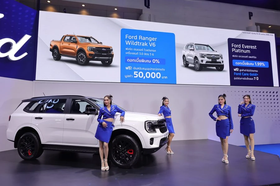 ฟอร์ด เตรียมจัดแสดง ฟอร์ด เอเวอเรสต์ สปอร์ต สเปเชียล เอดิชัน อย่างเป็นทางการครั้งแรกในงาน บางกอก อินเตอร์เนชั่นแนล มอเตอร์โชว์ ครั้งที่ 46 ณ บูธ A2 อิมแพค ชาเลนเจอร์ ฮอลล์ เมืองทองธานี ระหว่างวันที่ 26 มีนาคม ถึง 6 เมษายน 2568 พร้อมนำทัพรถยนต์รุ่นยอดนิยมมาจัดแสดงกับข้อเสนอสุดพิเศษ จัดเต็มไลน์อัพ ฟอร์ด เอเวอเรสต์ และ ฟอร์ด เรนเจอร์ หลากหลายรุ่น ตอกย้ำความเป็นผู้นำด้านรถกระบะ 4 ประตู ขับเคลื่อน 4 ล้อ ตัวจริงด้านความแกร่งและดุดันในทุกเส้นทาง พร้อมสร้างประสบการณ์ใหม่ด้วย Ford Live Studio สตูดิโอไลฟ์สดสำหรับเหล่าครีเอเตอร์นักสร้างสรรค์คอนเทนต์