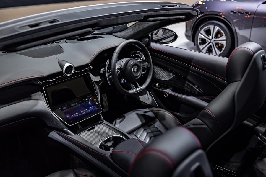 มาเซราติ กรันคาบริโอ โทรเฟโอ ยนตรกรรมเปิดประทุนตัวแรง ขับเคลื่อนด้วยเครื่องยนต์สันดาป ‘เน็ททูโน’ เบนซิน วี6 สูบ ทวินเทอร์โบ 3.0 ลิตร 550 แรงม้า (CV) ทรงพลังที่สุดที่เคยผลิตมา สะท้อนสมรรถนะเหนือระดับตามแบบฉบับของค่ายตรีศูล ผลิตขึ้นในประเทศอิตาลีทุกขั้นตอน มาพร้อมความหรูหรา สมรรถนะ ความสะดวกสบาย และความสปอร์ตเข้าด้วยกันอย่างกลมกลืน ระบบขับเคลื่อนแบบ all-wheel drive พร้อมหลังคาเปิดประทุนที่พร้อมสร้างประสบการณ์ใหม่ ในการสัมผัสกับอากาศธรรมชาติได้อย่างเต็มที่ ผลิตจากผ้าใบคุณภาพสูง มีให้เลือกถึง 5 สี ผู้ขับสามารถควบคุมการใช้งานได้ง่ายเพียงกดปุ่มบริเวณแผงหน้าปัด ใช้เวลาเพียง 14 วินาที และใช้พื้นน้อยเมื่อพับเก็บท้ายรถ รวมถึงเปิดใช้งานได้