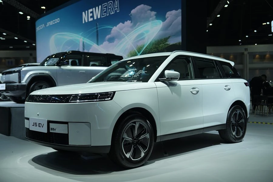 นอกจากนี้ภายในงาน แบรนด์ยังได้นำเสนอ JAECOO 5 EV ที่มาพร้อมกับการออกแบบโดยได้รับแรงบันดาลใจจากแนวคิด “จุดกำเนิดจากธรรมชาติ” ผสานความแข็งแกร่งและความสวยงามในทุกเส้นสาย โดดเด่นด้วยสมรรถนะอันยอดเยี่ยม ที่มาพร้อมกับนวัตกรรม “Human – Pet Friendly Travel” สร้างความสะดวกสบายและความปลอดภัยให้ทั้งผู้โดยสารและสัตว์เลี้ยง โดยมีระบบกันสะเทือนอิสระที่ติดตั้งมาด้วยความเข้าใจถึงพฤติกรรมผู้บริโภคอย่างแท้จริง พร้อมซันรูฟพาโนรามาขนาด 1.45 ตารางเมตร และจอแสดงผลอัจฉริยะ 13.2 นิ้ว ช่วยยกระดับประสบการณ์การขับขี่ในทุกสภาพถนน ไม่ว่าจะโลดแล่นบนถนนในเมืองใหญ่ หรือผจญภัยในเส้นทางธรรมชาติ JAECOO 5 EV จะเป็นอีกหนึ่งทางเลือกสำหรับคนรุ่นใหม่ที่มองหายานยนต์ไฟฟ้าระดับไฮเอนด์ที่ผสานนวัตกรรมและการออกแบบอย่างลงตัว (สเปคนี้อาจมีการเปลี่ยนแปลงเมื่อนำเข้ามาในประเทศไทย)