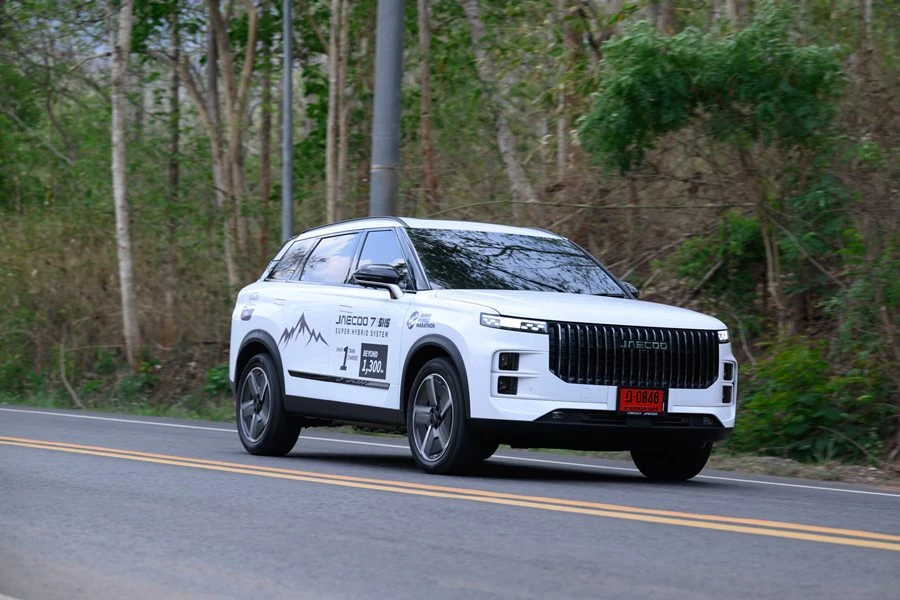ในการทดสอบ One Tank One Charge, Beyond 1,300 KM ในประเทศไทย JAECOO 7 SHS (Super Hybrid System) แสดงให้เห็นถึงประสิทธิภาพการประหยัดพลังงานที่โดดเด่น ขณะเดินทางผ่านหลายจังหวัด ได้แก่ อยุธยา นครราชสีมา ขอนแก่น เพชรบูรณ์ นครปฐม และกาญจนบุรี