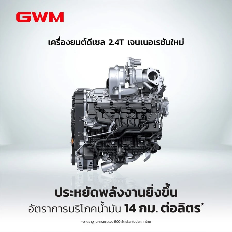 จากราคาค่าน้ำมันที่ผันผวนและมีราคาสูง เครื่องยนต์ดีเซลเป็นอีกหนึ่งทางเลือกที่จะช่วยให้ผู้ใช้รถประหยัดค่าใช้จ่ายในการเดินทางได้อย่างมาก ด้วยราคาน้ำมันต่อลิตรที่ต่ำกว่าเครื่องยนต์เบนซิน GWM จึงได้แนะนำ NEW GWM TANK 300 รุ่นเครื่องยนต์ดีเซลเข้าสู่ตลาดไทย เพื่อตอบโจทย์ความต้องการของผู้บริโภคชาวไทยที่ชื่นชอบรถยนต์สไตล์ BOXY ที่มาพร้อมเครื่องยนต์ดีเซล ที่ประหยัดน้ำมันและมีความทนทาน ด้านประสิทธิภาพของเครื่องยนต์ เครื่องยนต์ดีเซล 2.4T เจนเนอเรชั่นใหม่ มาพร้อมกับเทคโนโลยีเทอร์โบแปรผัน (VGT) ที่มีแรงดันสูงถึง 2,000 บาร์ ควบคุมด้วยระบบอิเล็กทรอนิกส์ ท่อร่วมไอดีแบบคู่ที่ฝาสูบระบบอิเล็กทรอนิกส์ Exhaust Gas Recirculation (EGR) และระบบปั้มน้ํามันเครื่องแบบแปรผัน ทำให้เครื่องยนต์สร้างพละกำลังได้อย่างมีประสิทธิภาพสูง การเผาไหม้ที่สมบูรณ์ยิ่งขี้น ช่วยลดการปล่อย์ไอเสีย NOx และประหยัดน้ำมันเชื้อเพลิงได้มากยิ่งขึ้น โดยอัตราการบริโภคน้ำมันของ NEW GWM TANK 300 DIESEL อยู่ที่ 14 กิโลเมตรต่อลิตร (ตามมาตรฐานการทดสอบ Eco sticker ในประเทศไทย) ซึ่งเครื่องยนต์ดีเซล 2.4T นี้ จึงช่วยลดค่าใช้จ่ายด้านน้ำมันเชื้อเพลิงในระยะยาว ทำให้ผู้ใช้งานสามารถลดต้นทุนการเดินทางได้ NEW GWM TANK 300 DIESEL จึงเป็นตัวเลือกที่น่าสนใจสำหรับผู้ที่มองหารถยนต์ที่มีประสิทธิภาพสูงในการขับขี่ คุ้มค่า และประหยัดค่าใช้จ่ายได้ดียิ่งขึ้น
