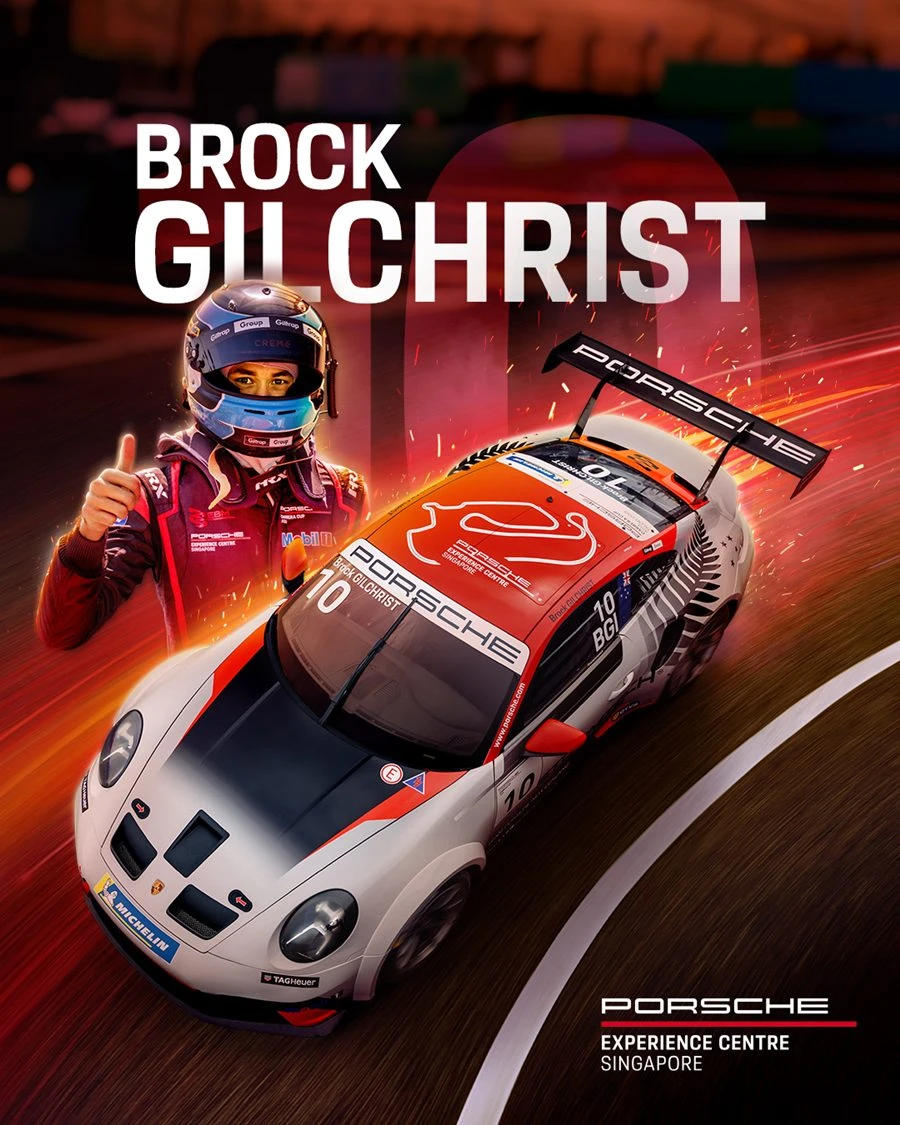 บร็อค กิลคริสต์ (Brock Gilchrist) นักแข่งดาวรุ่งผู้มากความสามารถ จะลงแข่งขันด้วยรถ Porsche 911 GT3 Cup หมายเลข 10 ภายใต้การดูแลของทีม Earl Bamber Motorsport (EBM) กิลคริสต์ได้รับการคัดเลือกเป็นนักแข่งทุนในโครงการ Team Porsche New Zealand และยังได้รับโอกาสก้าวเข้าสู่โปรแกรม PCCA Talent Pool ซึ่งเป็นโครงการพัฒนาเยาวชนนักแข่งของ Porsche Carrera Cup Asia ที่มุ่งสนับสนุนและต่อยอดศักยภาพของนักแข่งที่มีแววในภูมิภาค