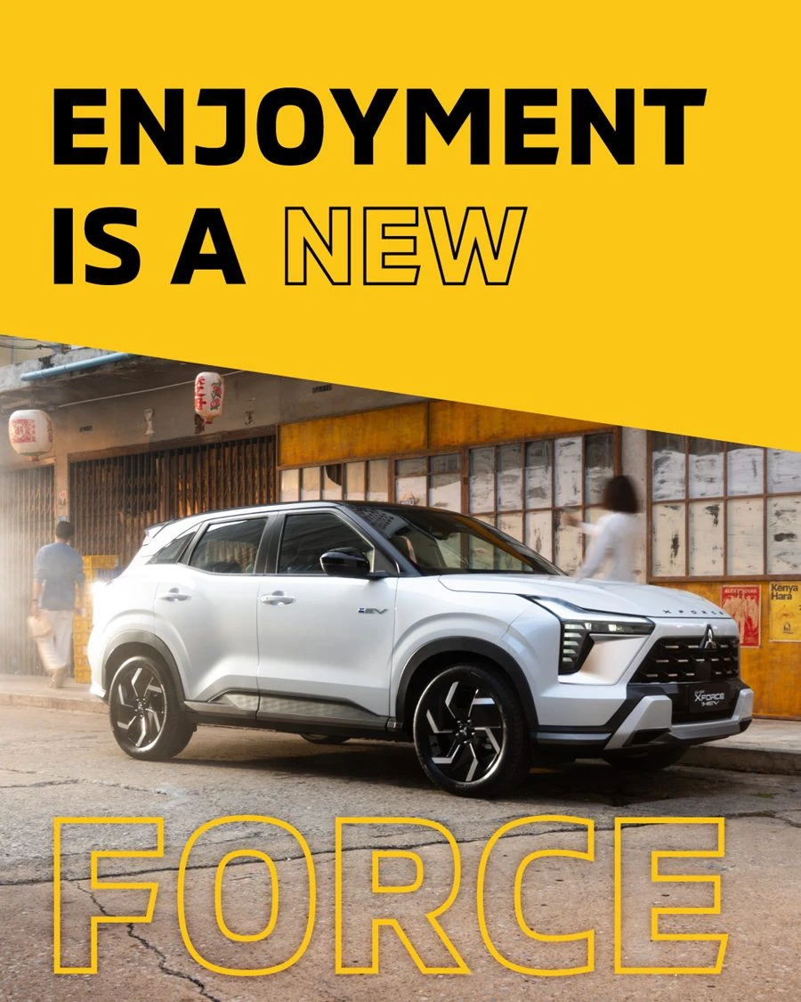 การเปิดตัวเต็มรูปแบบของรถยนต์ ALL-NEW MITSUBISHI XFORCE HEV ได้เริ่มต้นขึ้นในเดือนมิถุนายนนี้ โดย มิตซูบิชิ มอเตอร์ส ประเทศไทย เดินหน้าสื่อสารจุดเด่นของ XFORCE HEV อย่างต่อเนื่องผ่านแคมเปญโฆษณาใหม่ ตอกย้ำแนวคิด “Xperience the Force” ภาพยนตร์โฆษณาที่หยิบเพลงฮิตติดหูอย่าง “ยินดีที่ไม่รู้จัก” มาเรียบเรียงใหม่ในเวอร์ชันที่เปี่ยมด้วยพลังและความสนุก